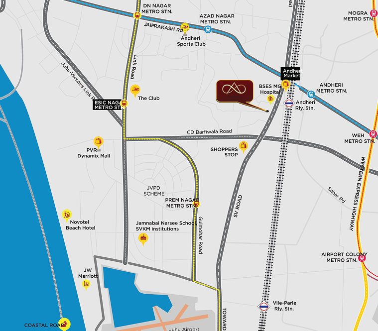 The advantage of Andheri West lies in its perfect balance of energy and ease, a location where connectivity, culture, and convenience come together effortlessly. From seamless access to business districts and transport hubs to a thriving social scene filled with premium dining, entertainment, and retail, everything you need is just minutes away.